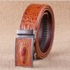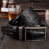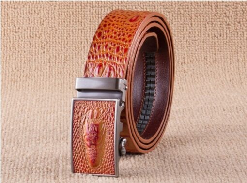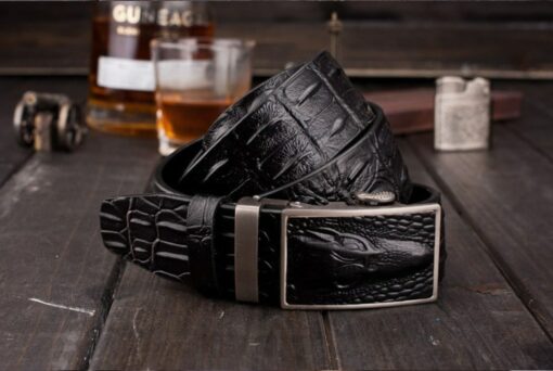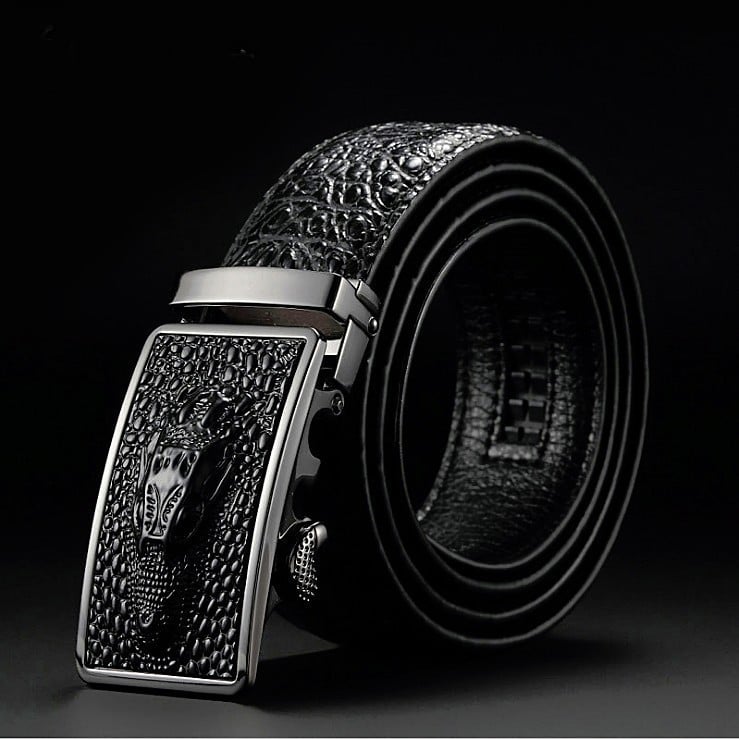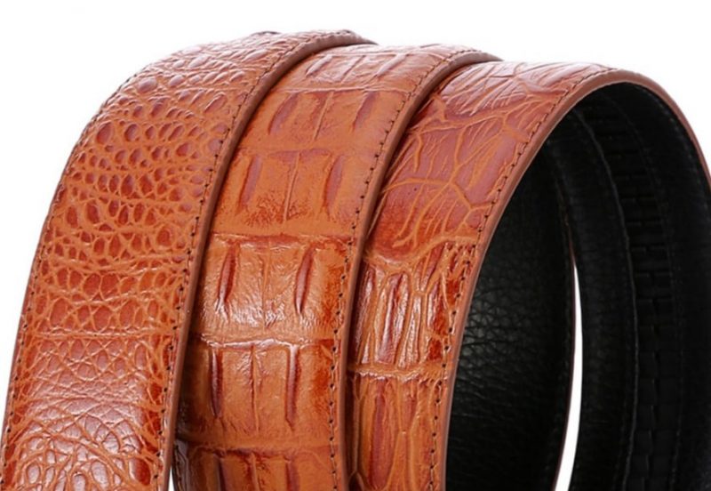 – Thiết kế vân nổi cá sấu trên mặt da, đầu nịt bằng hợp kim không rỉ màu trắng sang trọng.